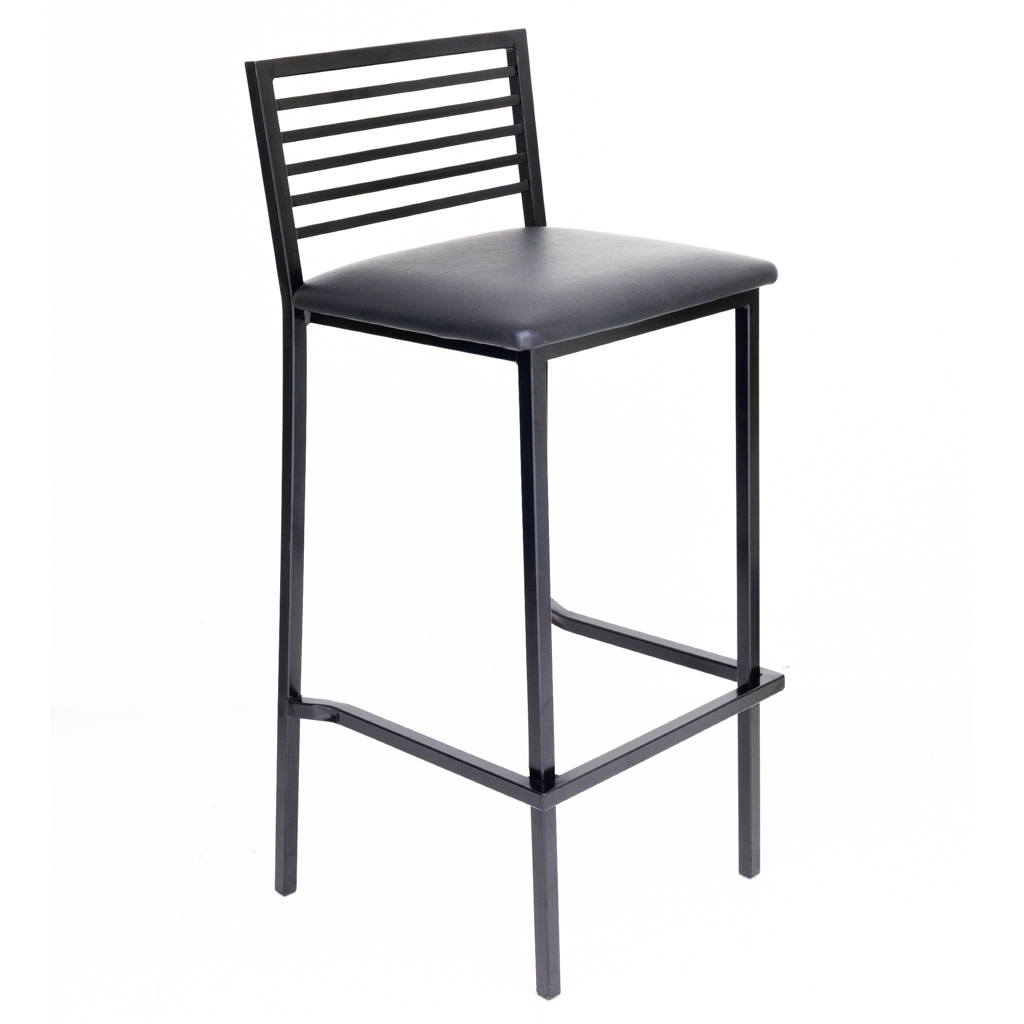 Banqueta com encosto vazado, reforço na estrutura, leve, prática, bonita, excelente para restaurantes, refeitórios e lanchonetes. Assento e estofado em corano. Estrutura: metalon aço carbono 20×20 parede 1,20 mm. Pintura epoxi po eletrostatico, cura 300° Solda mig (garantia contra ruptura 5 anos) Ponteiras em polipropileno embutidas na parte inferior.