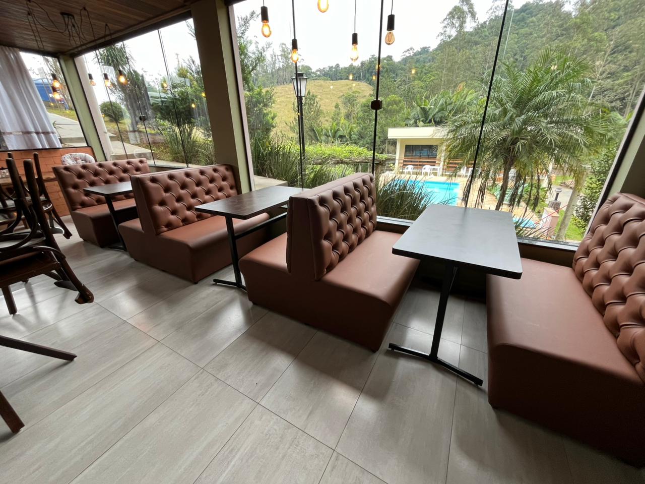 Booth Capitonê Duplo, produzido em MDF 18mm e revestido em tecido corano. Cores à escolha do cliente. Feito sob medida.